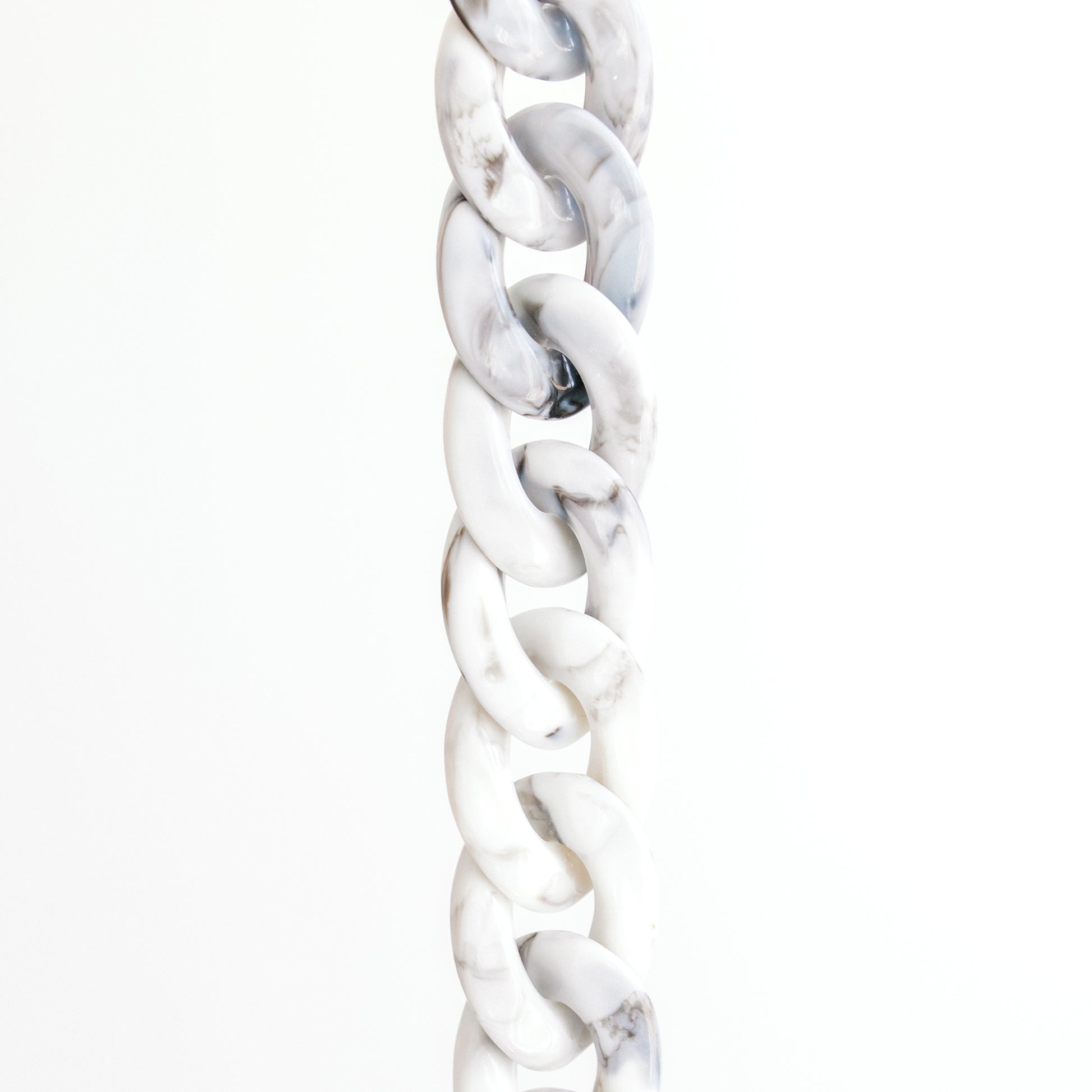 Marble acrylic chain link strap with gold hardware. Dimensions: 48" x 0.75"